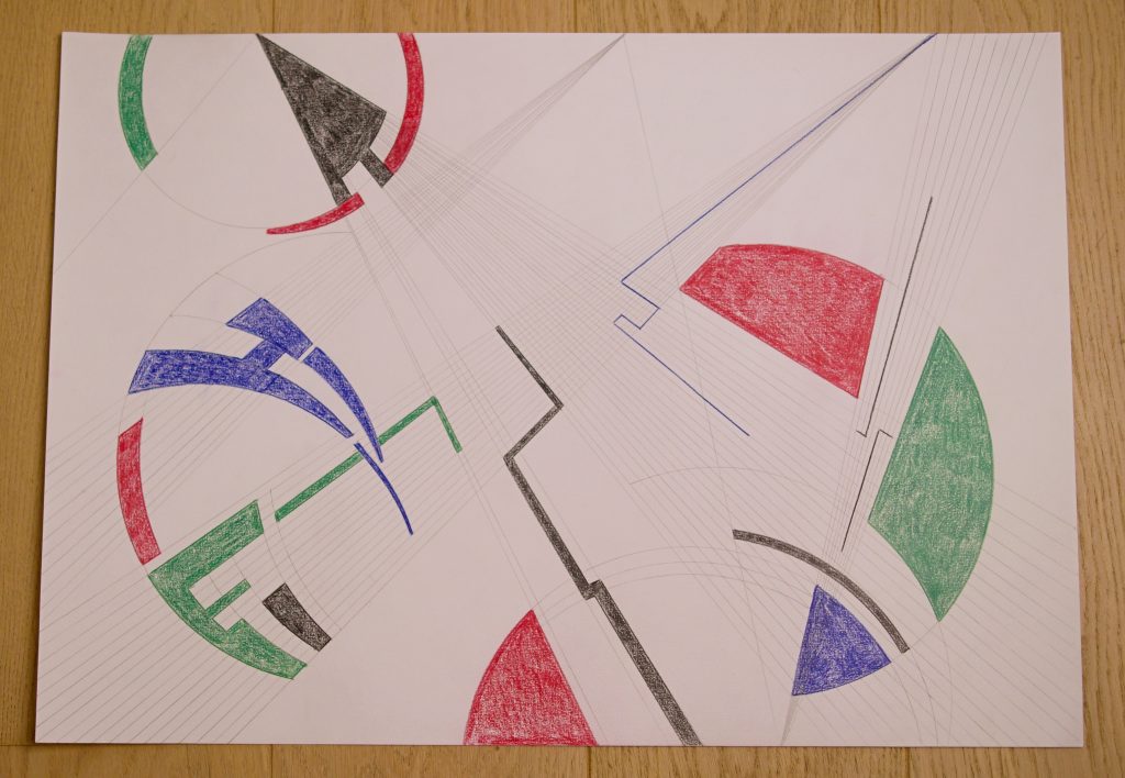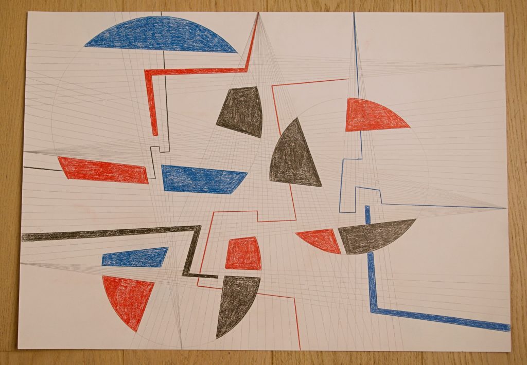 Navn: “Abstrakt maskine”. Mål: 42 cm (høj) x 59 cm (bred). Pris: 300 DKK – SOLGT!