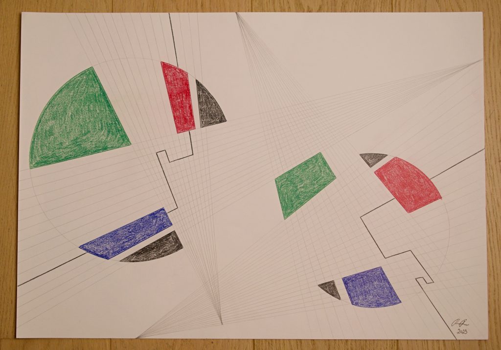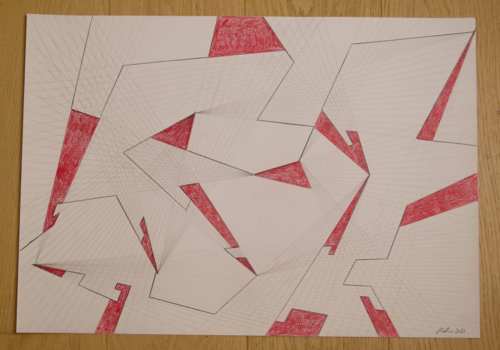 Navn: “Vidunder perspektivet”. Mål: 42 cm (høj) x 59 cm (bred). Pris: 300 DKK (uden ramme).